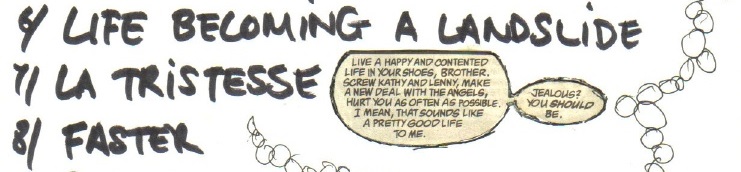 “When I see a lot of bands’ lyric sheets, before I hear the record, I know what they’re gonna sound like, because the metre and the text is like, da da da / da da da / da da da, and I think when I see my lyrics written down, even though I know what the song’s gonna be like, I can’t really imagine how James can possibly sing the words. But I think that’s the best thing about us. I think that’s the one thing we do that’s quite different from most bands…”