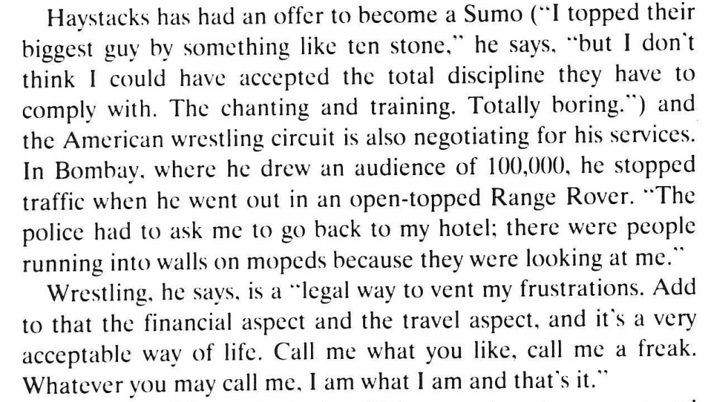 Speaking of ‘Me and Stephen Hawking’ in particular, Wire has said: “I’d love to know if Giant Haystacks fought in a Bombay fight and was watched by 100,000 people. Because if that’s true… no, I don’t know what the fuck it’s about. Cos then, like you said the genetic stuff, the scientific angle, seems to… I don’t know, it’s just that amazing mixture, Richey was never afraid of really low art and really high art. And that’s why it’s never elitist really, it’s just knowledge, it’s just taking something from everything.”15